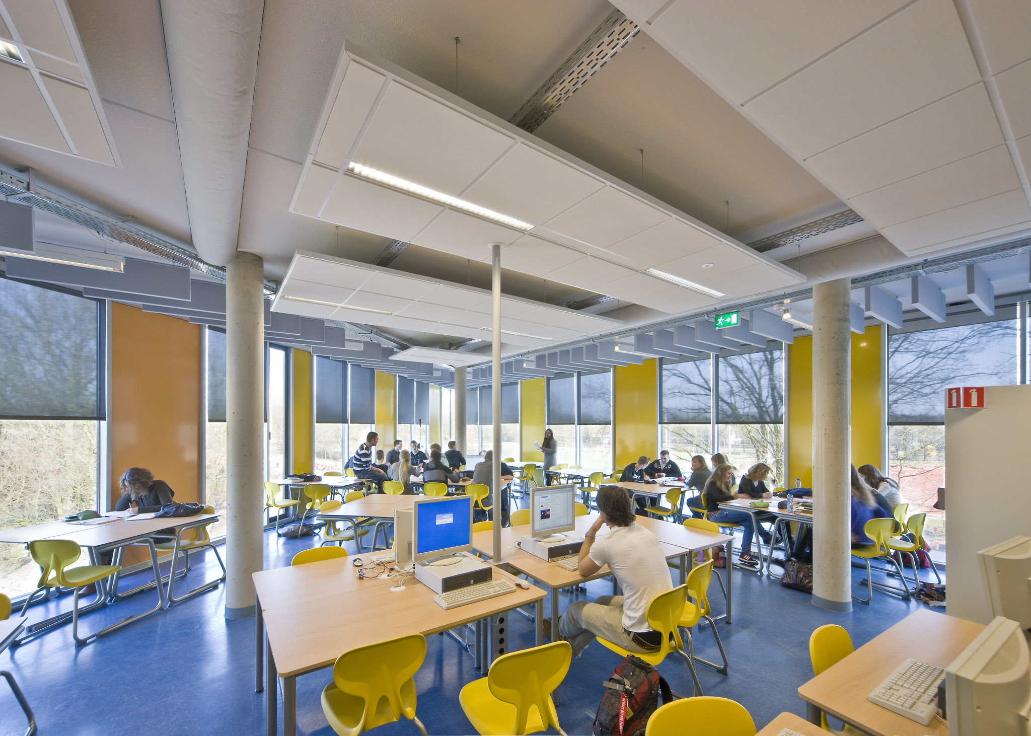 Located in a green setting just outside Weert’s city center, the school embraces its natural surroundings with floor-to-ceiling windows, offering students and teachers a bright and stimulating learning environment filled with natural light.