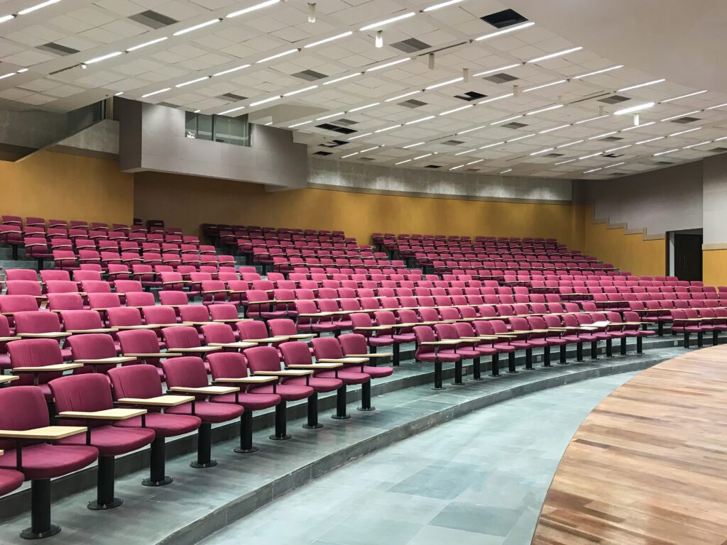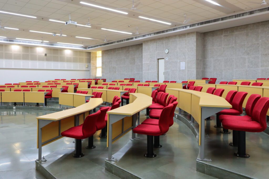 The R&D Block houses lecture halls, labs, discussion & meeting rooms, faculty rooms, and office spaces amongst others. The Lecture Hall Block houses one 500-seater and two 300-seater halls as well as some classrooms and instruction labs. While the Sports Block is equipped with various sports facilities like badminton courts, table tennis tables, squash courts, tennis courts, gym & yoga room, and an indoor swimming pool.