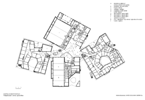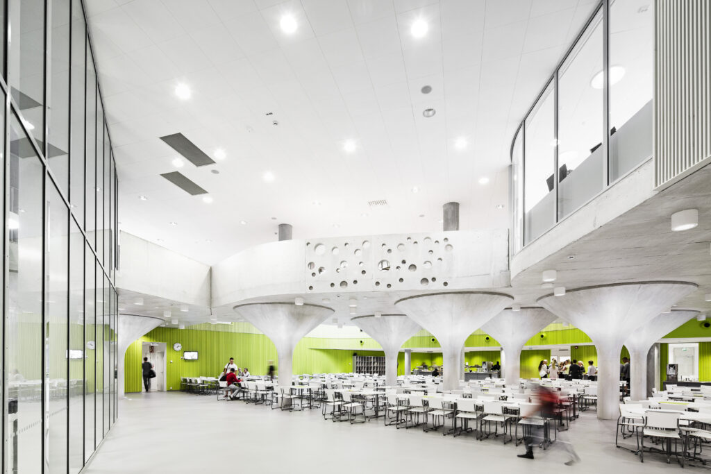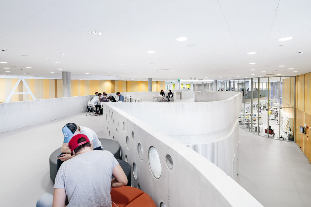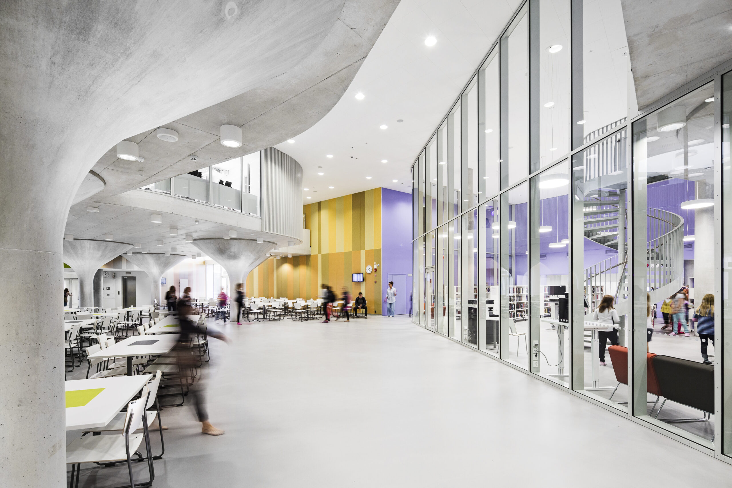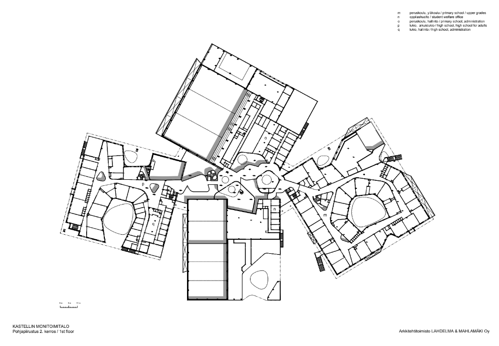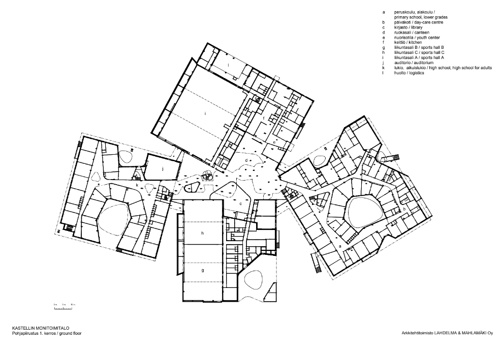 Programmatically and technically the building not only caters for the school, but also for the local and national communities. The project includes a comprehensive school, an upper secondary school and a library. Also within the building are educational facilities for adults and a youth centre. A series of sports halls cater for various athletic clubs and teams. The largest sports hall has 800 seats and amongst other things plays host to matches for the national volleyball league.