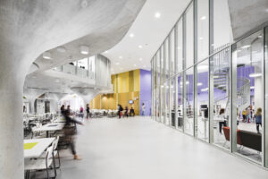 The Finnish education system is repeatedly highlighted as being world-leading and Kastelli School and Community Centre has frequently been the face for this reputation. The Finnish realise how integration and shared learning is key to a successful education. One of the reasons for Kastelli’s success is how the spaces throughout the centre allow children of all age ranges to congregate in the various open corridors or free-form lounge spaces and lobbies – whether whilst working or socialising. In true but exemplary Finnish tradition, the building boasts impressive sustainability and technical records. The project attained a LEED for Schools Gold rating as well as the RIL (Finnish Association of Civil Engineers) Prize 2014 and was shortlisted for the MIPIM Award for “Best Innovative Green Building”.