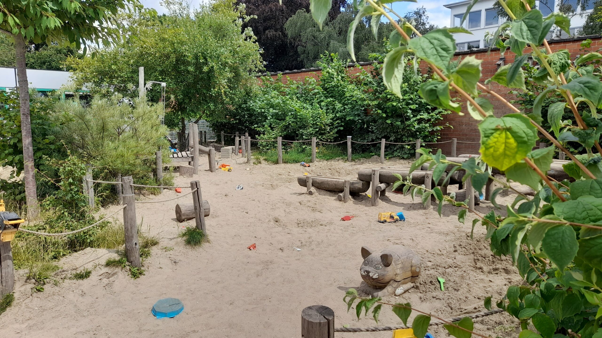 More than 40 trees and over 150 shrubs were planted in a varied landscape where natural materials such as sand and gravel play an important role. Sports fields were also laid out throughout the nature-rich areas so that both large and fine motor skills are stimulated.