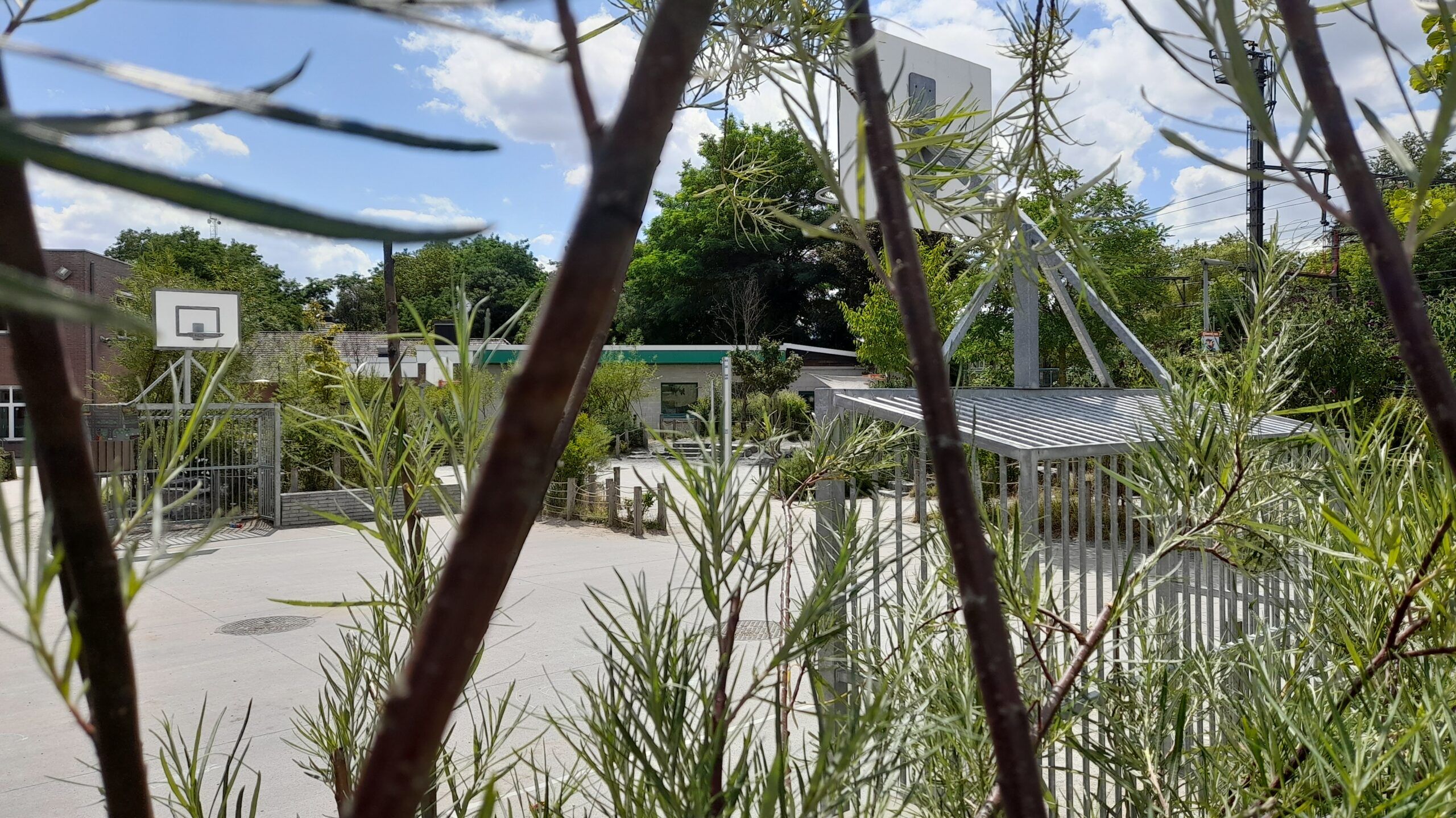A climate playground provides an answer to various challenges that come with climate change. For our school, it was important to consider the heat stress caused by abundant sunshine on a bare concrete surface. Planting trees, native greenery and limiting concrete surface will provide shade and coolness over time.