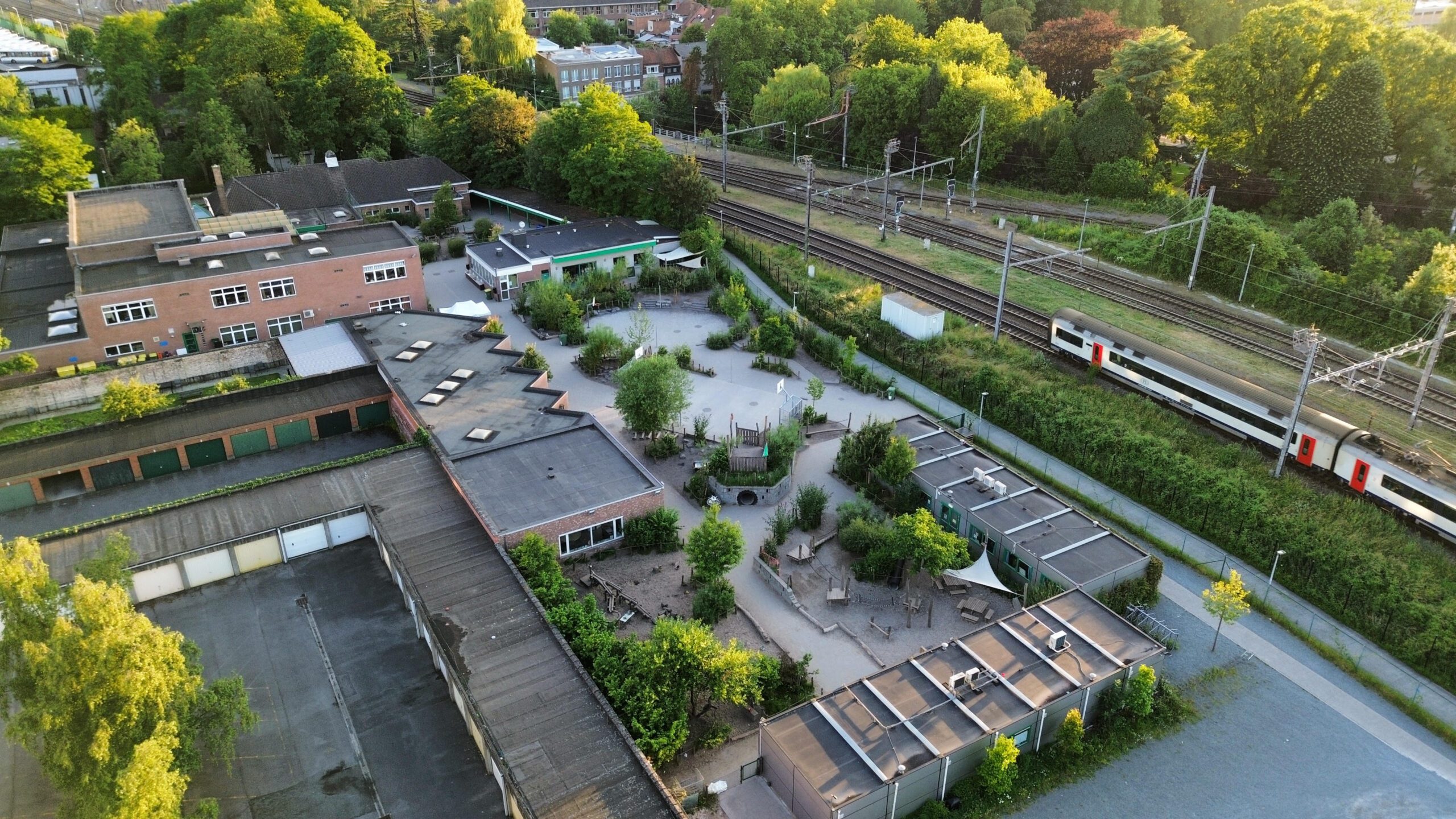 The playground project in Sint-Paulus Kortrijk was one of the 23 projects selected for the Flemish Environment Department’s Proeftuin Ontharding. Through this campaign, the Flemish government is committed to both climate adaptation and mitigation. After all, softening combats heat island effects, provides more space for water and ensures better air quality, greater biodiversity and more CO₂ storage, among other things. The school made a commitment to connect 90% of the roofs to a new rainwater system where reuse and infiltration into the soil are paramount. In addition, the entire playground+ car park (4000 m²) was demolished and reconstructed.