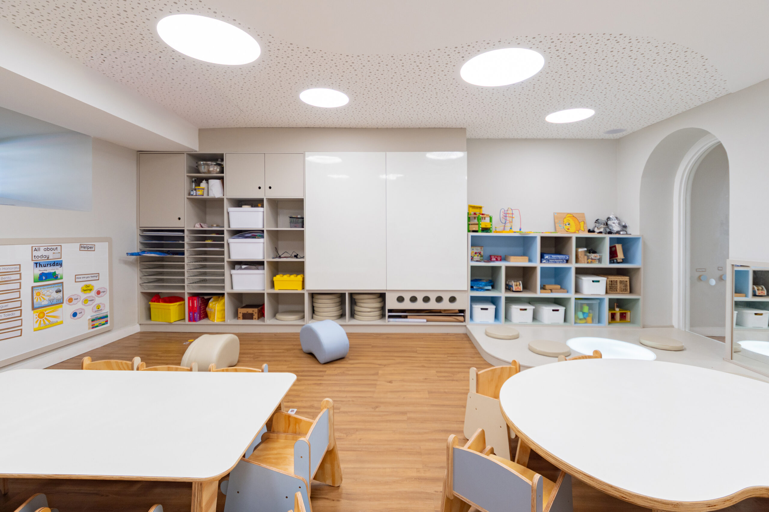 The project was developed in close collaboration with local educators and the pedagogical team of Inspired Education in London. This collaborative process ensured the architecture responded to real needs, offering a sensitive and intentional spatial framework for early childhood development.