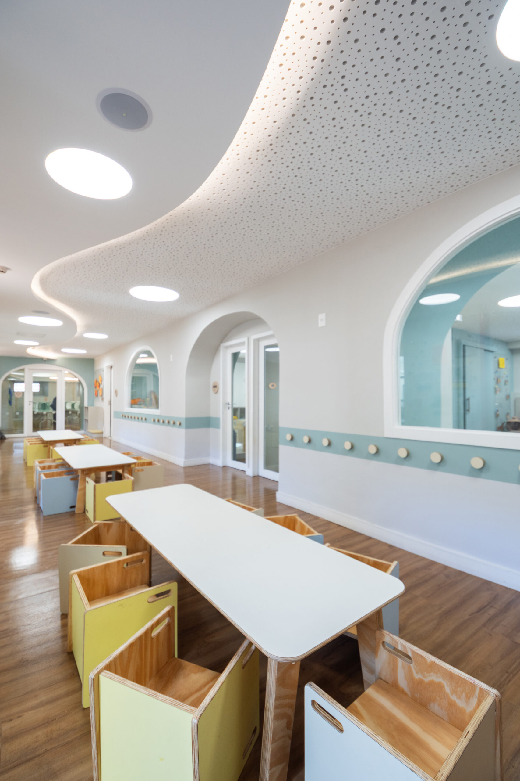 The first phase of the project included the renovation of classrooms for preschool levels 2 and 3, a multi-purpose space that serves as both dining area and psychomotor room, restrooms, and circulation areas. Hallways were designed as learning extensions of the classrooms, expanding opportunities for interaction and discovery.
